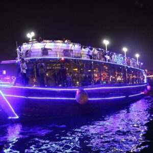 Step aboard a traditional wooden dhow and cruise through Dubai Creek from Al Seef, where modern elegance meets Emirati heritage. This 2-hour dinner cruise offers a magical evening filled with stunning views of old Dubai’s skyline, authentic dining, and live entertainment. Perfect for couples, families, and tourists who want to experience the cultural charm of Dubai.